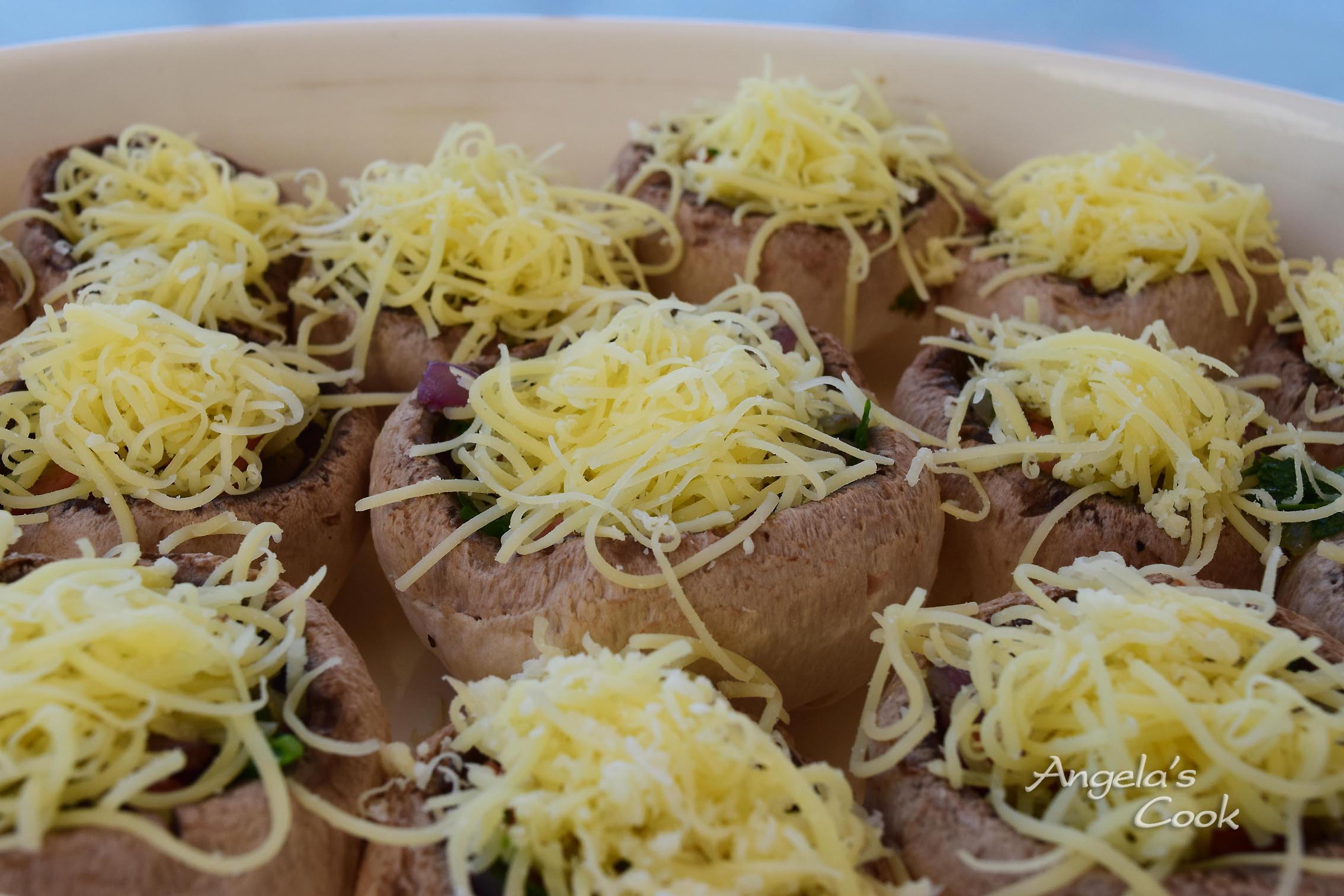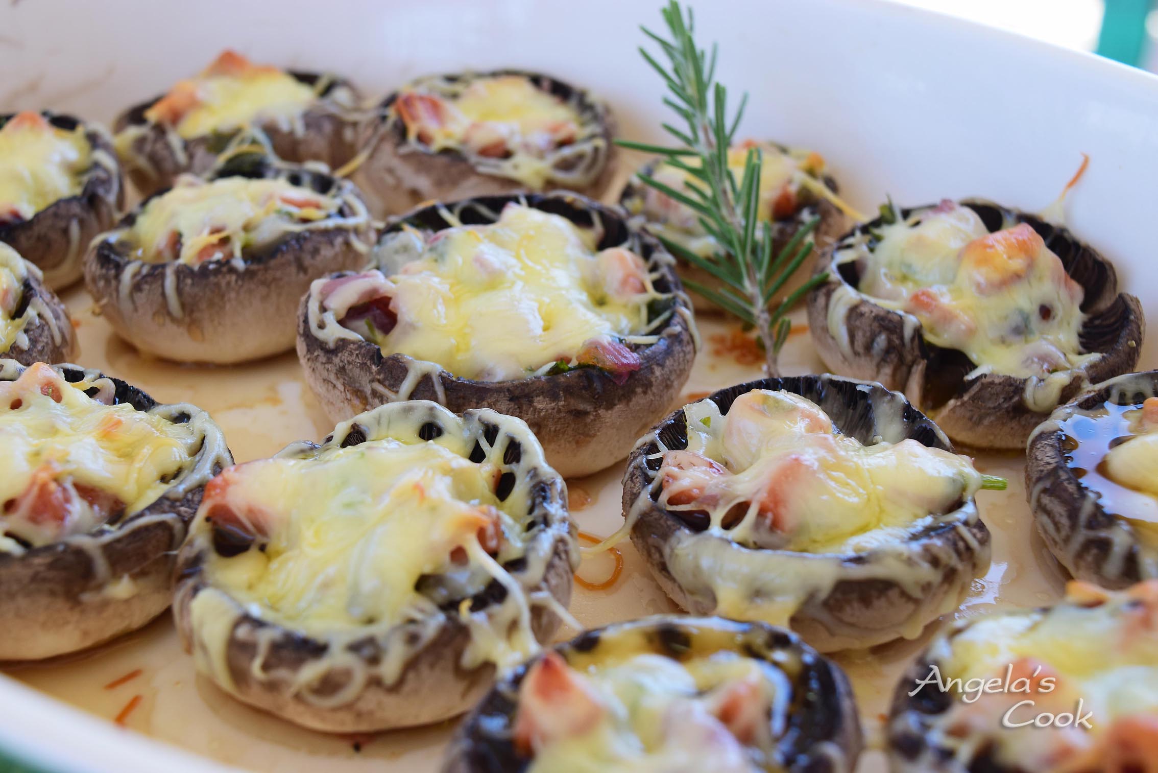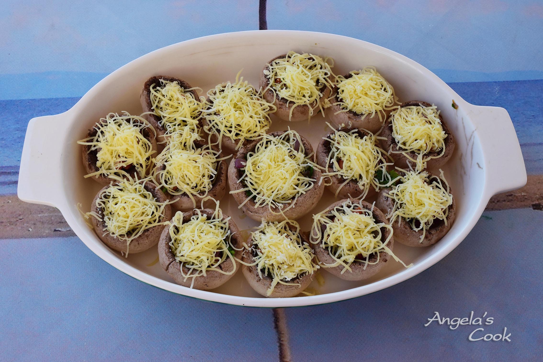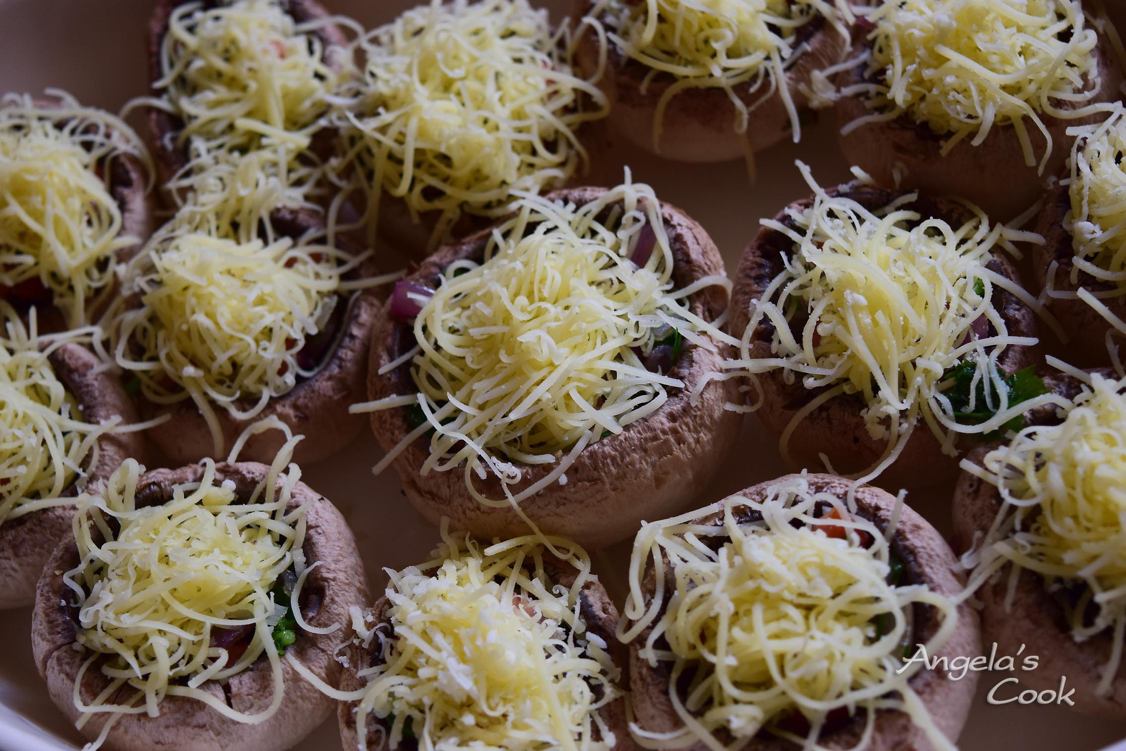 Γεμίζουμε τα μανιτάρια ρίχνουμε λίγο τριμμένο τυρί επάνω στο καθένα, τα βάζουμε στο φούρνο στους 200 βαθμούς για 20 λεπτά με 1/2 ώρα να γκρατιναριστούν.