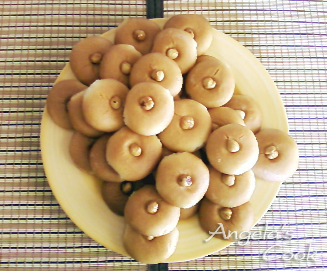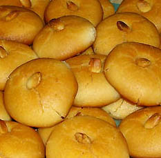 Ανακατεύουμε την μαργαρίνη με την ζάχαρη μέχρι να ασπρίσει. Προσθέτουμε τα αυγά, το σιμιγδάλι, την βανίλια και το αλεύρι. Αφού γίνει μια μαλακή ζύμη παίρνουμε κομμάτια από την ζύμη στο μέγεθος του καρυδιού, τα πλάθουμε τα πιέζουμε ελαφρώς να πλατύνουν και τα βάζουμε σε ταψί στρωμένο με λαδόκολλα σε απόσταση μεταξύ τους. Βάζουμε ένα αμύγδαλο στη μέση της κάθε μπαλίτσας. Ψήνετε στους 180 βαθμούς για 20 με 25 λεπτά.