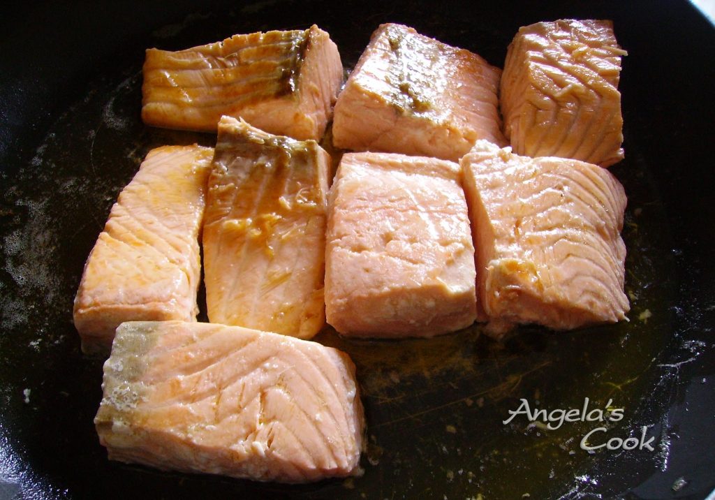 Σε ένα αντικολλητικό τηγάνι θωρακίζουμε τον σολομό και από τις δυο πλευρές μέχρι να πάρει χρώμα. Αλατοπιπερώνουμε ρίχνουμε και το μπούκοβο. Βγάζουμε από το τηγάνι και το αφήνουμε να κρυώσει. Στο ίδιο τηγάνι ρίχνουμε λίγο λάδι και σοτάρουμε τα κρεμμυδάκια το σπανάκι στο τέλος ρίχνουμε τον άνιθο.