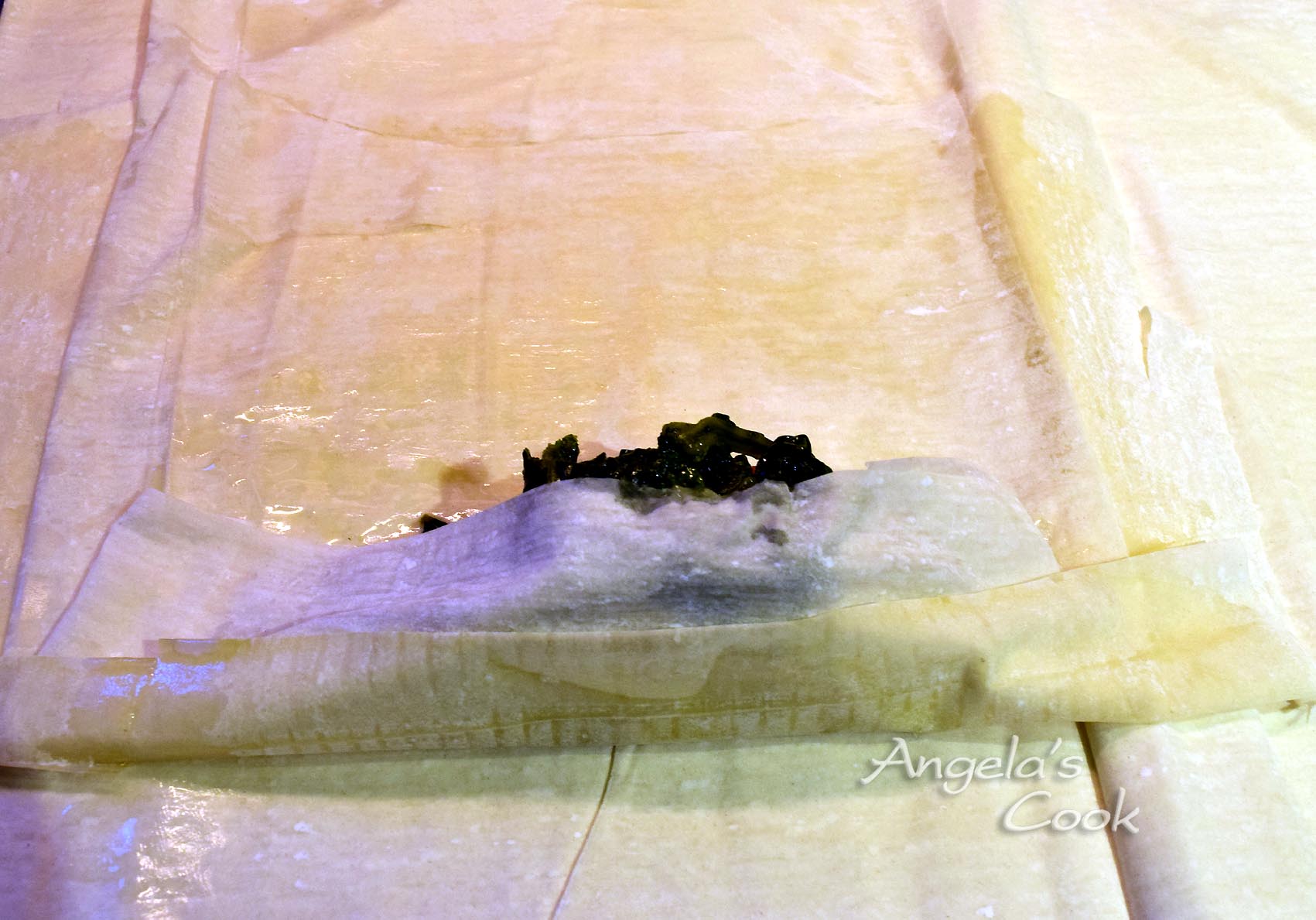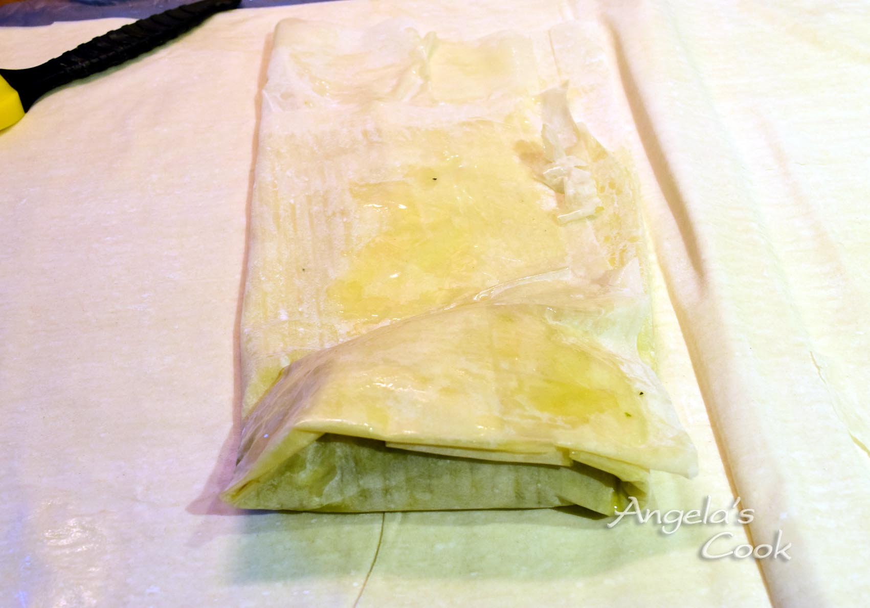 Το διπλώνουμε σαν πακετάκι κλείνουμε τα πλαϊνά του φύλλου και στο τελείωμα λαδώνουμε για να παραμείνει κλειστό.
