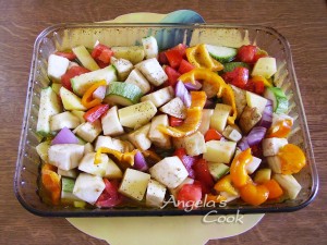 Πλένουμε τα λαχανικά και τα κόβουμε σε μέτρια τετράγωνα κομμάτια.Τα βάζουμε σε ένα πυρέξ ή ταψί τα ραντίζουμε με το λάδι.Πασπαλίζουμε με το ψιλοκομμένο μαιντανό. Αλατοπιπερώνουμε.