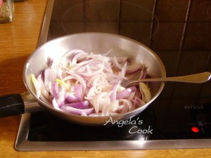 Σε ένα τηγάνι βάζουμε λάδι, βούτυρο και σοτάρουμε τα κρεμμύδια. Ρίχνουμε την ζάχαρη αλάτι και πιπέρι. Τα αφήνουμε να πιουν τα υγρά τους και να καραμελώσουν.