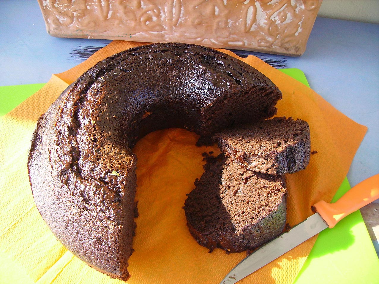 Ένα πολύ ζουμερό κέικ με έντονη σοκολατένια γεύση όχι ιδιαίτερα γλυκό που παραμένει ζουμερό και υγρό και τις επόμενες μέρες.
