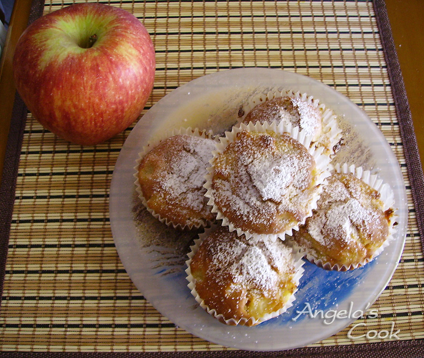 Χτυπάμε το βούτυρο με την ζάχαρη να ασπρίσουν. Ρίχνουμε τα υπόλοιπα υλικά και εξακολουθούμε το χτύπημα. Καθαρίζουμε τα μήλα τα κόβουμε κύβους και τα ρίχνουμε μέσα στο μείγμα ανακατεύοντας με κουτάλι. Τοποθετούμε το μείγμα σε φόρμα για μάφινς γεμίζοντας τα κατά ¾. Ψήνουμε στους 160 βαθμούς σε προθερμασμένο φούρνο για 20 με 25 λεπτά.