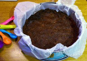Ρίχνουμε την κρέμα μέσα στη βάση και στρώνουμε την επιφάνεια. Βάζουμε στο ψυγείο να παγώσει για να κοπεί κομμάτια.