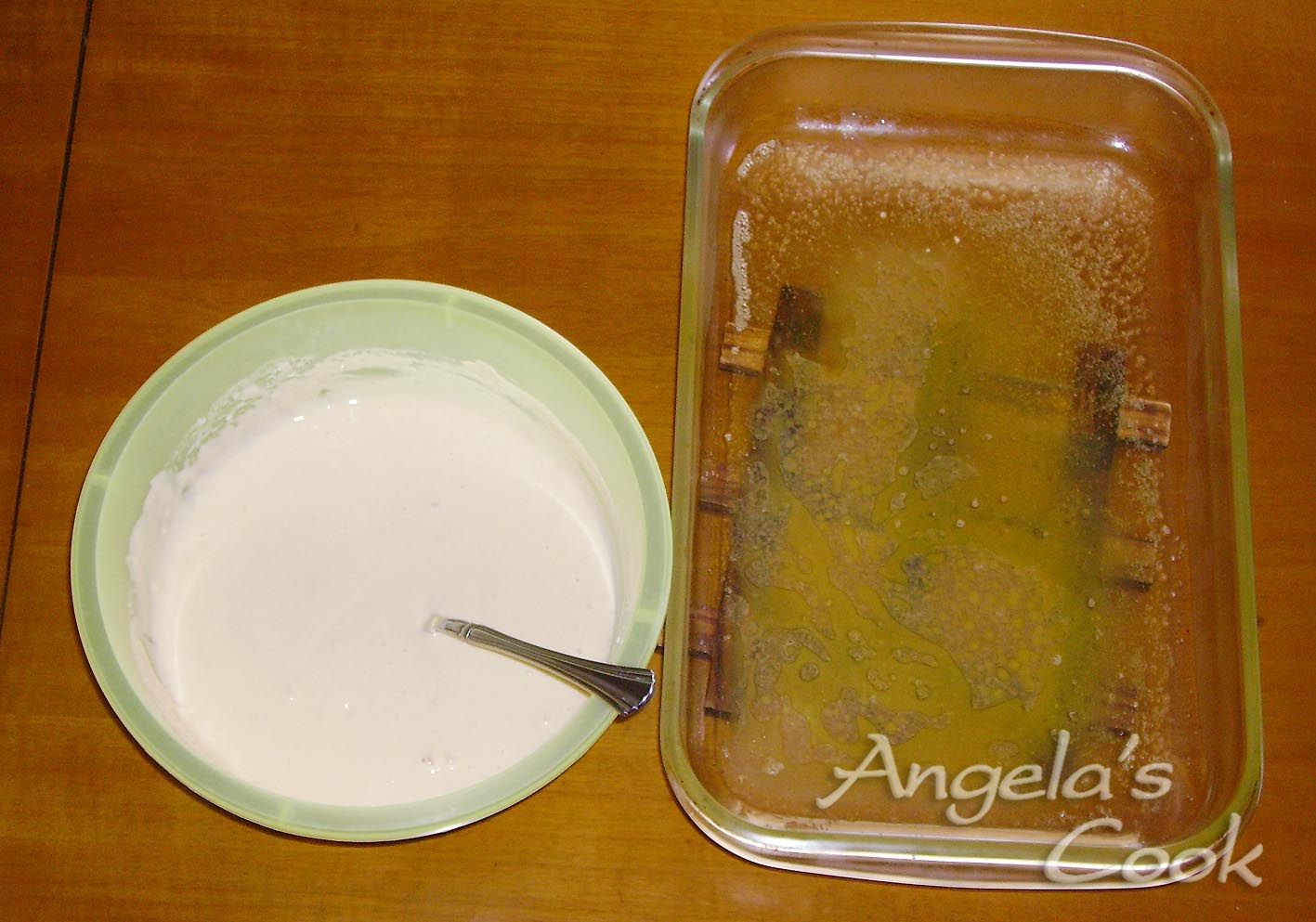Σε ένα μπολ ανακατεύουμε καλά το γάλα, το αλεύρι, το γιαούρτι, τα αυγά και το αλάτι.